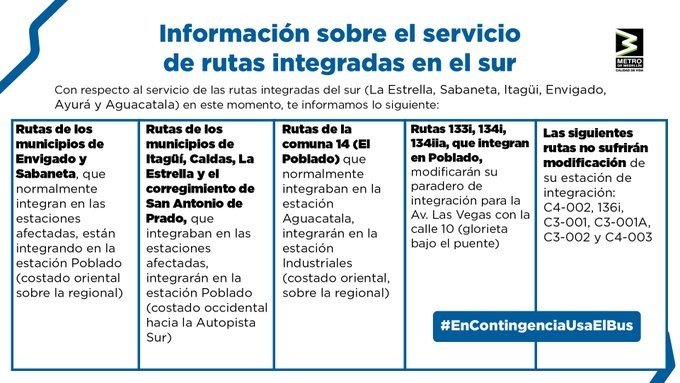Minuto30.com .- El Metro de Medellín, en el marco de su 30 aniversario, ha emitido un aviso importante para los usuarios de las rutas integradas del sur del Valle de Aburrá.