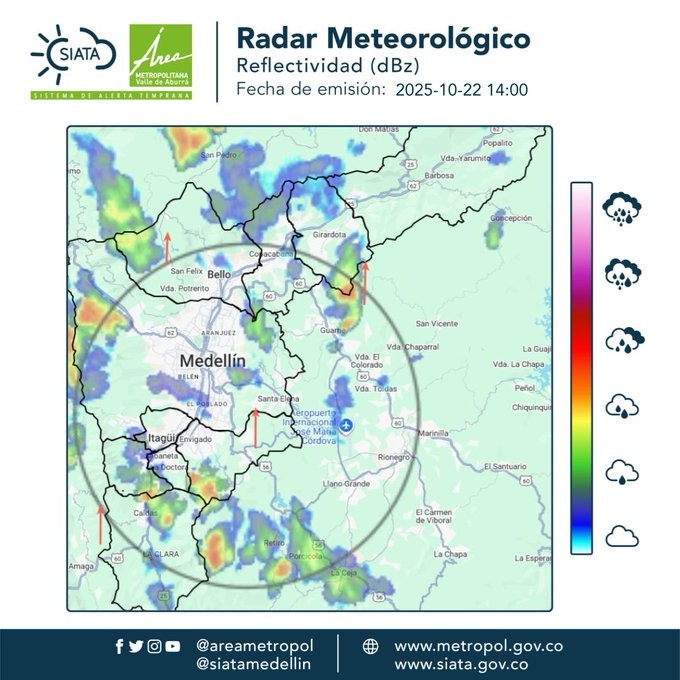 Minuto30.com .- El Sistema de Alerta Temprana de Medellín y el Valle de Aburrá (SIATA) ha emitido un nuevo reporte sobre la actividad pluviométrica en la región, advirtiendo sobre la presencia de lluvias de alta intensidad en varios municipios. Se recomienda a la ciudadanía tomar precauciones ante la posibilidad de crecientes súbitas y deslizamientos.