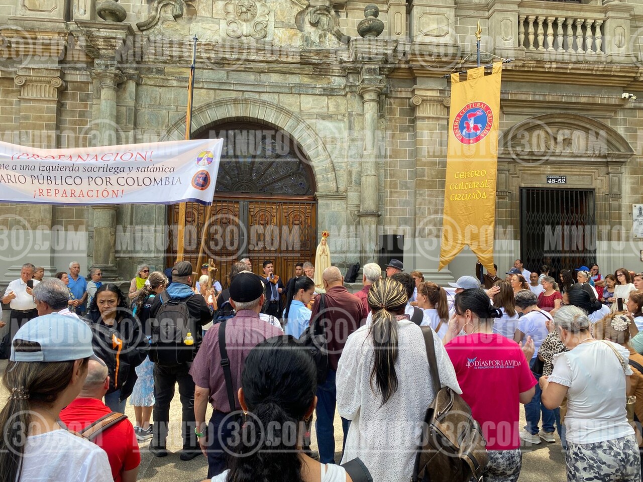 En respuesta, el viernes 17 de octubre, se registró una inusual protesta pacífica con el lema «¡Profanación!» y un «Rosario Público por Colombia ¡Reparación!» contra lo que consideran una «izquierda sacrílega y satánica».