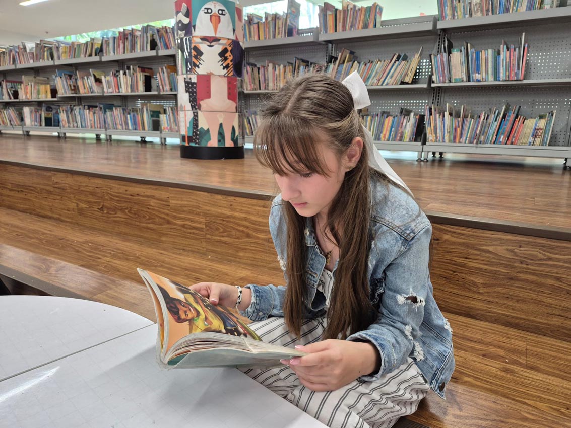 María Fernanda en la Sala infantil Pedrito Botero de la Biblioteca Pública Piloto.